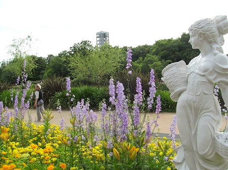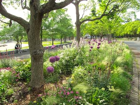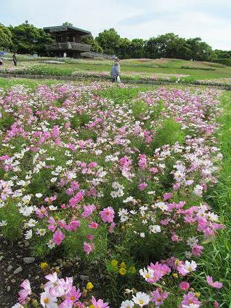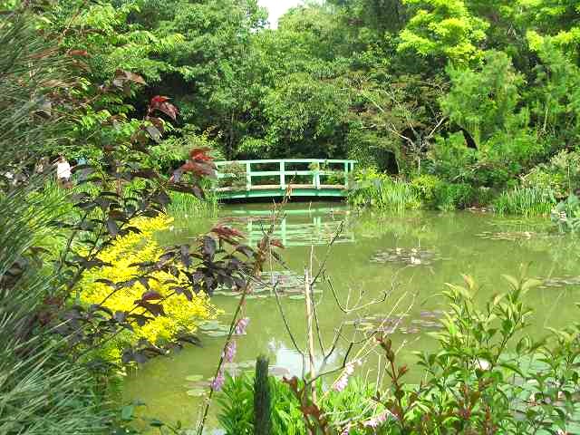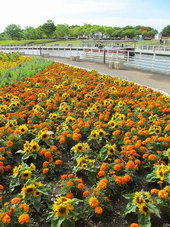 フラワーパーク&ガーデンパーク共通券\1700で入園 ガーデンクルーズで西端から東端まで片道\700 展望塔から「花織り畑」 黄色はマリーゴールド&ひまわり、ピンクがコスモスと季節早とりです。 『印象派庭園』 暑いので木陰て休息 花美の庭 (以前は「モネの池」でしたが名前が使用禁止になる」) 中国庭園 ひまわり&コスモス 美しいネギ坊主アリウム