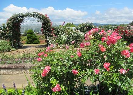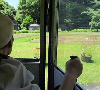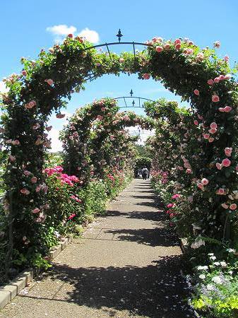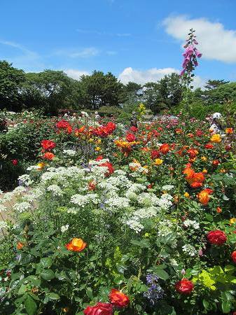 少し暑いぐらいの天気、薔薇が一番の見ごろでした。 フラワートレインでバラ園まで 温室前から正面入り口を見る トレイン駅が温室近くにあったのにだいぶ遠い位置に代わっていた(足の悪いシニアには不評だ) 宿根草や和の草花が次々と移り変わりそうな庭で、持続性の高いガーデン! ローズガーデン 大温室クリスタルパレス