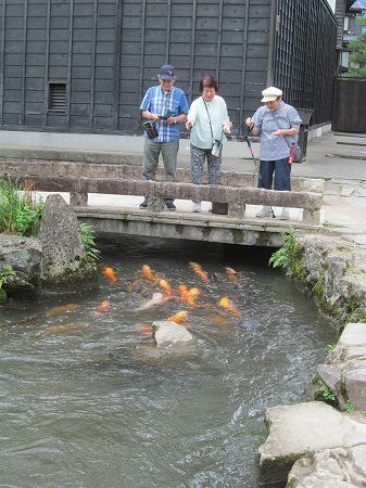 円光寺横の瀬戸川の鯉に餌やり