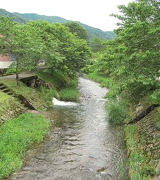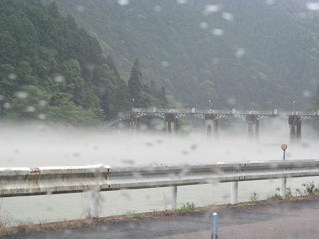 『飛騨一宮水無(みなし)神社』前の無瀬(みなせ)川で梅花藻を見るのが目的でしたが、前日の大雨で見えません。
