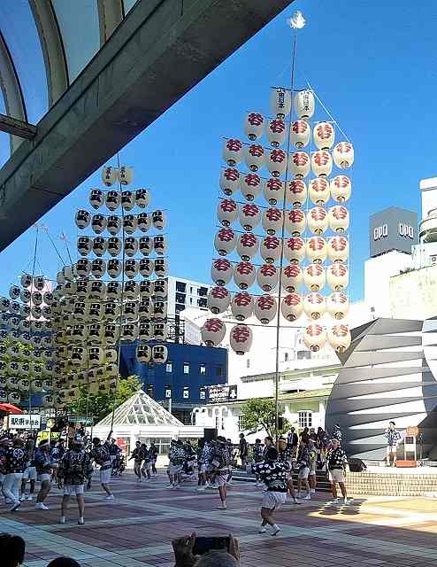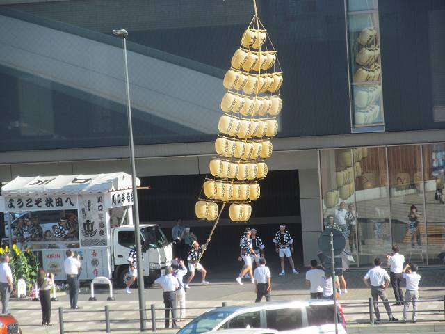 秋田に着いたら駅前で昼竿灯が始まるところでした(昼間は色々な場所で披露しています)
