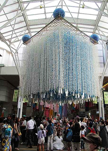 仕事帰りの人も増える。 暑い中!何処までも続く飾りに歩き疲れてホテルへ戻る。
