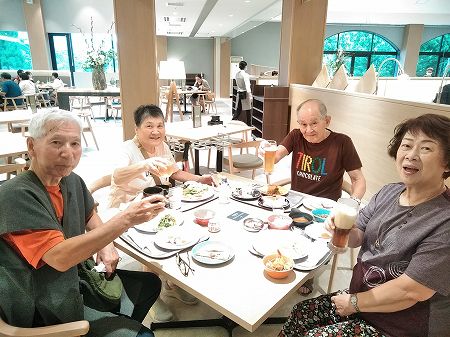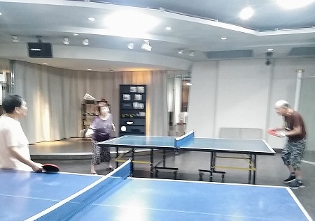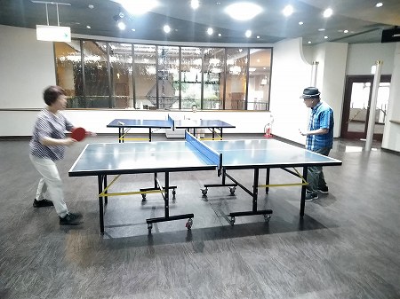 7:00~8:00朝食バイキングの腹ごなしで、卓球 9:00~30 2面 (Takadono夫婦は燃えています)