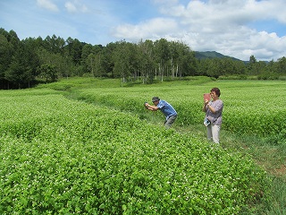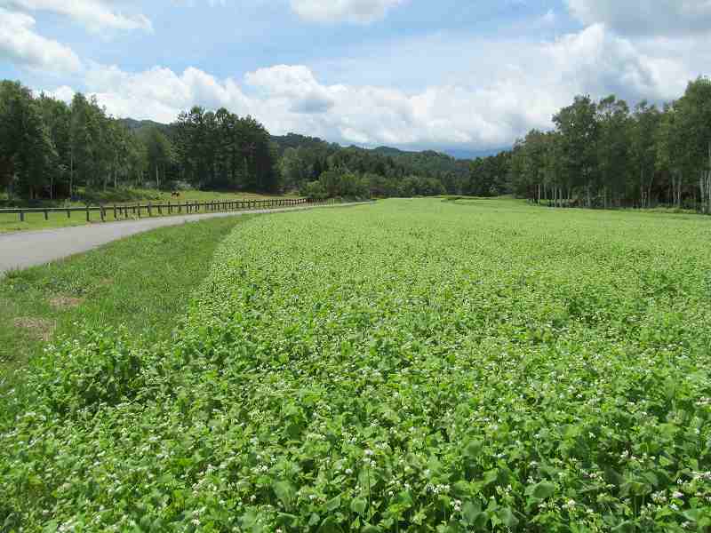 開田高原「木曽馬の里」 そばの花が咲き始めてきました