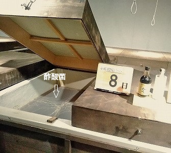江戸時代の酢造りや現代の醸造の様子が見られた。 酢は穀類や果実から酒を造り、「酢酸金」の働きで酢に変化させる。