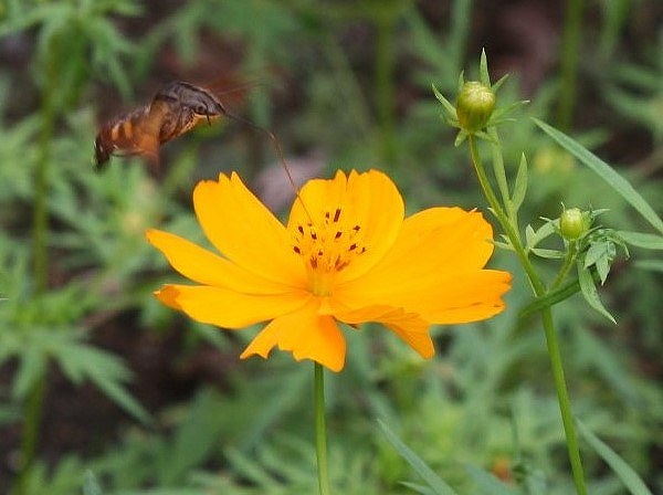 曇り空のコスモス畑 ホバーリングしながら蜜を吸うハチドリそっくりな『ホウジャック』 超長い蜜を吸う為のストローを持つ、スズメガ科の仲間で、蛾(が)です! キバナコスモスと曼珠沙華 「はしゃぐ声」に振り向くと、小学生が遠足で訪れていました。 そろそろ秋が訪れてきたかな? 道の駅で買ったレンコン尽くしのランチ、花を愛でながら!