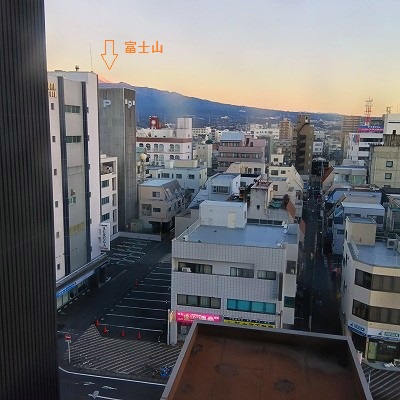 AM7:00 カーテンを開けたらビルの隙間から・・・今日も富士山くっきり! 朝食しっかり!