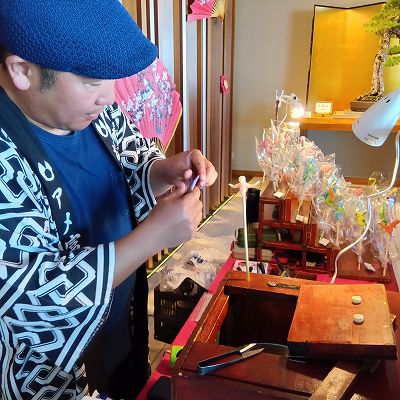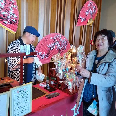 アメ富士は静岡県下では、唯一(全国に5~6人)の飴細工師:水木貴広 懐かしい練飴細工の実演販売がホテルロビーでありました