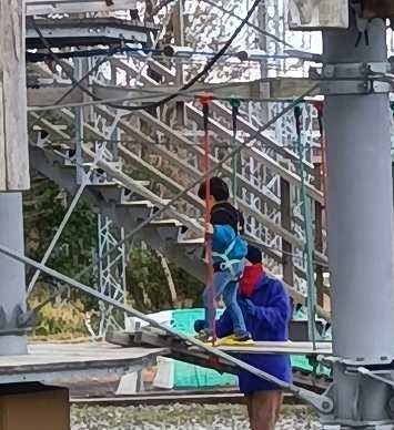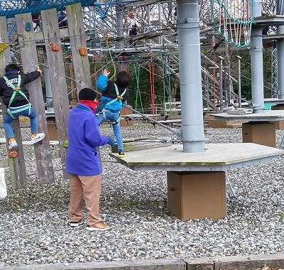 まず下の孫のアスレチック30分を済ませ、上の孫とは1時間2F以上でバランスと筋力の消耗に耐えました。
