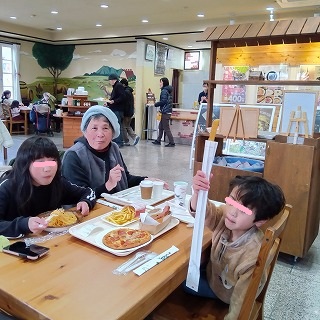 寒い園内でしたが暖かいカフェでランチ! 済ませたら大津のホテルで16:00合流です。