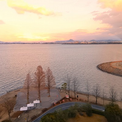 息子たちは大人4人で長浜へ出かけ、琵琶湖のホテルで合流
