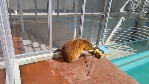 ![]() 大水槽で驚き、屋外で設備見ながら旧館まで見学・・・カピパラ、アシカ、亀が寂しく展示>旧館へ入る |