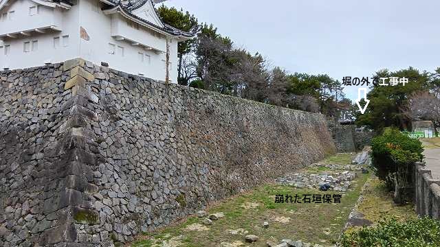 ![]() 天守閣からIGアリーナを見るつもりが耐震不良で登れません 修復を待つ石垣 |