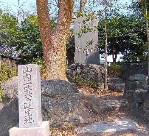 ![]() 駐車場から歩くとすぐ『神明生田神社』 山内一豊公の父盛豊公が建てたと・・・ |