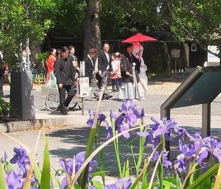 ![]() 蓬左文庫前の花壇を眺め徳川園再入園する |
