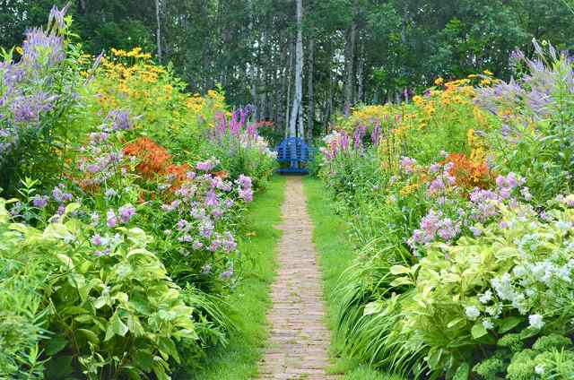 ミラーボーダー 左右対称に植物え混んでいる帯状花壇(ボーダー) 季節によって開花する花が変わる