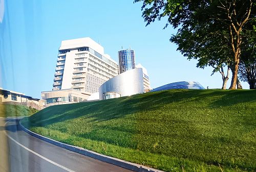 ![]() 高速から見えたトマムのスキー場とホテル 樽前PAで休憩、展望台からの眺め |
