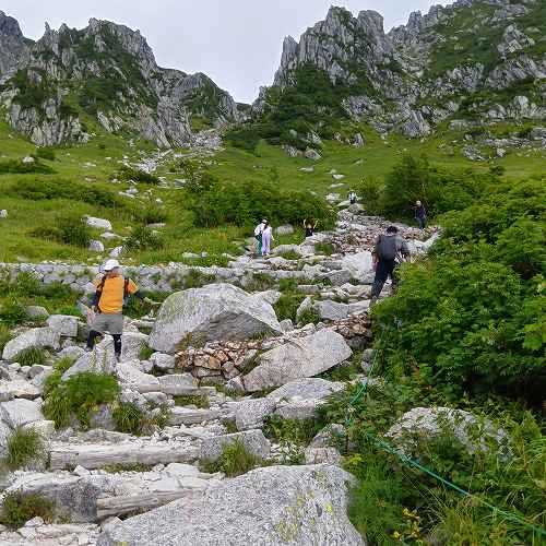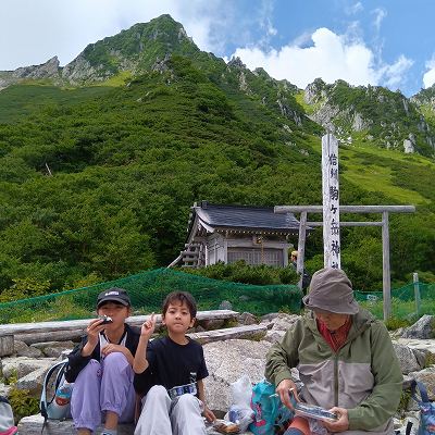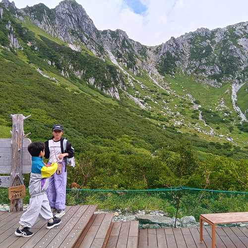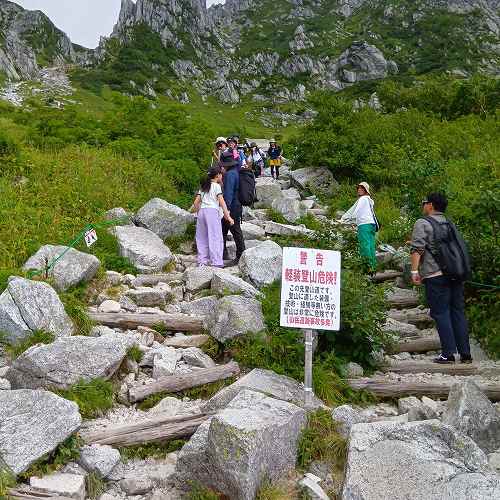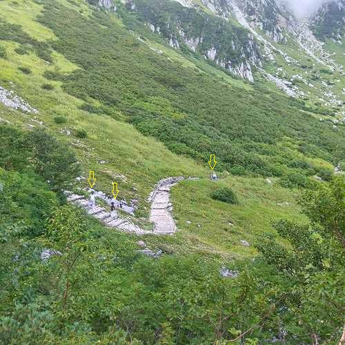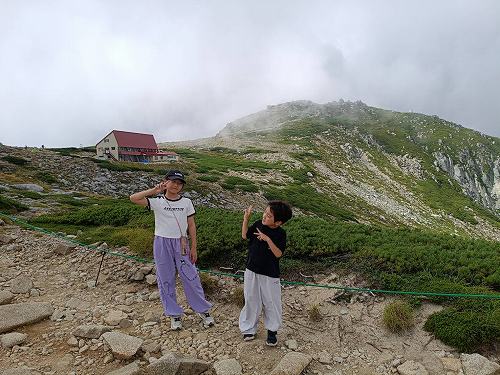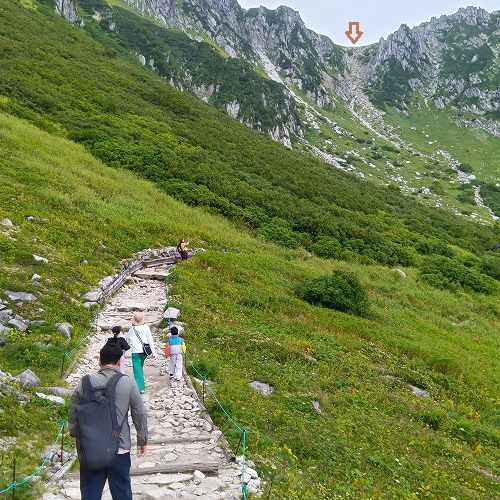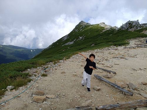 ![]() 千畳敷カールから矢印の鞍部まで親子4人で登っていきました。 私は途中まで一緒に歩き引き返す・・・ |