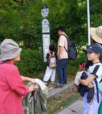 ![]() 団体客より先に並び乗車です しらび平からバスに並びます |