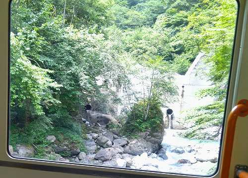 ![]() バスの窓からのぞくと恐ろしい道です しらび平からロープウエで千畳敷カールへ |