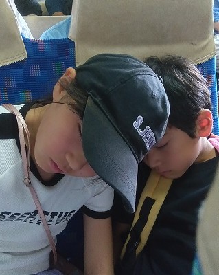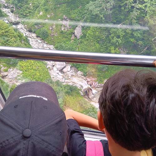 ![]() 元気よく親より速く戻ってきました。 3:00のロープウエに急いで並ぶ |