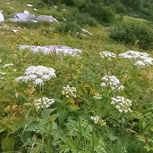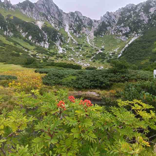 ![]() 12℃~11℃ 鞍部と山小屋周辺 駒ヶ岳山頂2956mが見えます |