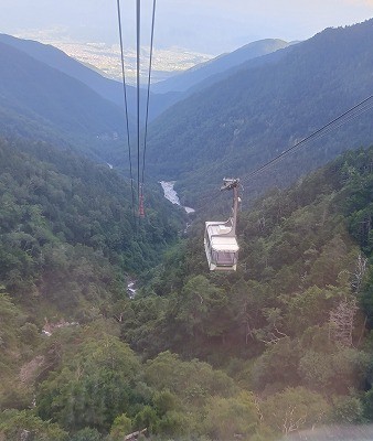 9:30清流苑>11:20リンクスホテル>バス>ロープウエー>12:00~3:00山頂お花畑>ホテル