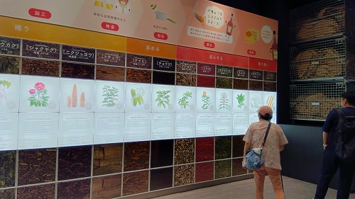 ![]() 傾斜地を利用して生薬を上から下にエコ移動させる工夫も・・・ 製造ラインのオートメイション化には驚きです 14種類の生薬を調整・配合 |