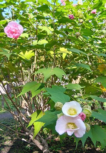 朝昼晩といろを変化させる芙蓉