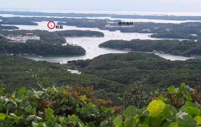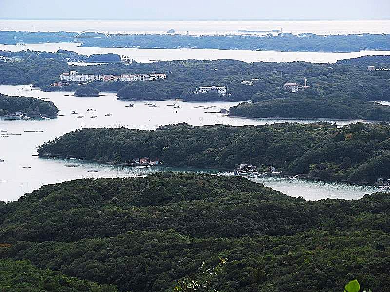 ![]() 地中海村の眼下には英虞湾に浮かぶ筏はアコヤ貝、海苔、牡蠣(カキ)等の養殖が盛んです |