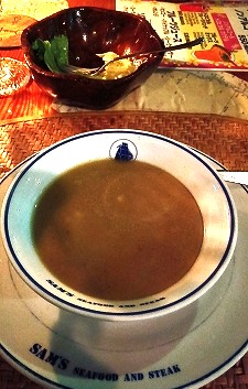 ![]() カレースープ&ステーキ(周りは硬くて中央だけ食べる) ライスは大盛で半分残す |