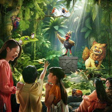 ![]() 沖縄北部に生息しているヤンバルクイナ『ジャン』と沖縄伝統の守り神、シーサーをモチーフにした『シシ』がメインで登場するアトラクションになります。 スクリーンのアトラクションでは、観客がジャンやシンと実際に漫才のような会話を交わし、そのやり取りを楽しんでいました。 ジャンに質問したり、逆にジャンから笑いを誘う軽快な質問が・・・もちろん、森の中の動物たちが好きになれるような時間が待っていました。 |