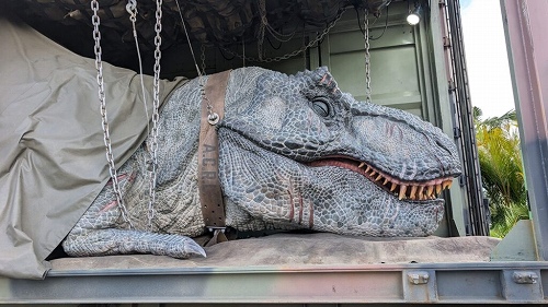 ![]() 大音響が響きT-REXが顔を出し、水が振ってきたり、警備員が・・・! 最後に眠るT-REX背中にして写真撮影、突然目覚めあわや・・・! |
