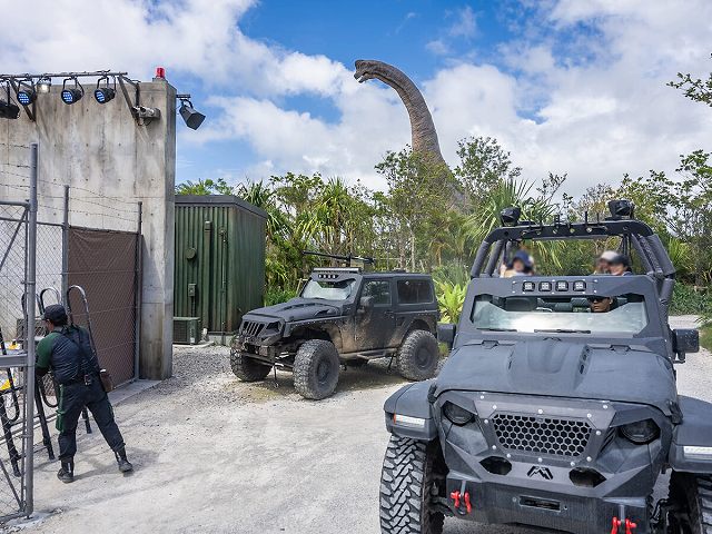 ![]() 『ダイナソーサファリ』 入場が早かったので20分待ち 楽しむために「さー!調査隊になりきろー」 リアルな恐竜が生息するジャングルを大型オフロード車で巡るライド型アトラクションです。 |
