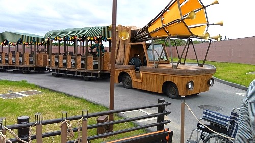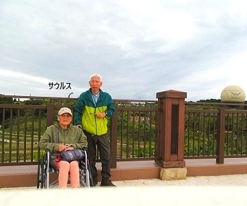 ![]() インフィニチーテラスから①ダイナソーサファリへ坂道を車椅子で向かう |