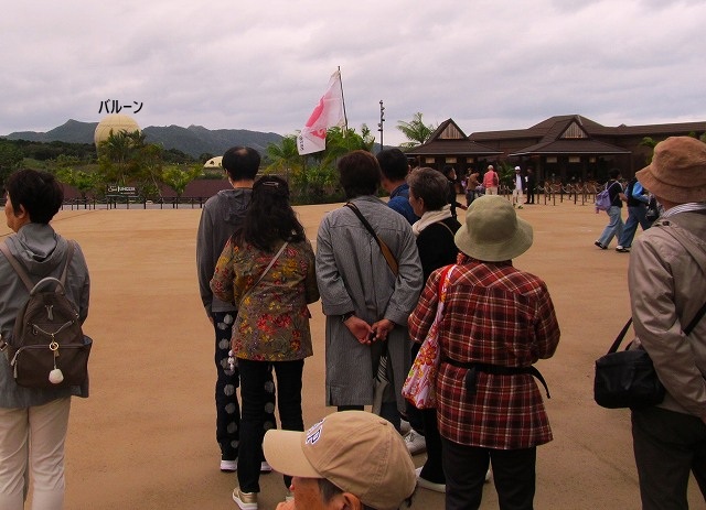 ![]() 添乗員さんが入園券を買いに、天気は曇天、傘、カッパ持参でリックが重い! ジャングリアツリー正面(1Dayチケット\6930) |