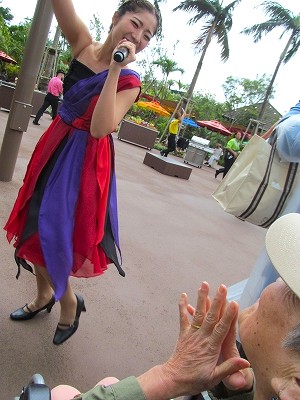 ![]() ③ ワイルドビート広場で突然始まるビートの効いたダンス音楽 車椅子で輪の中に入り楽しみました。 |