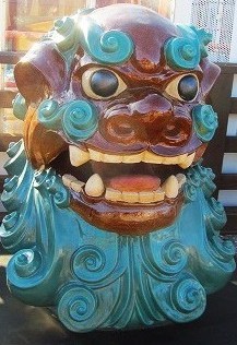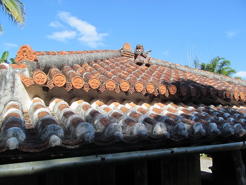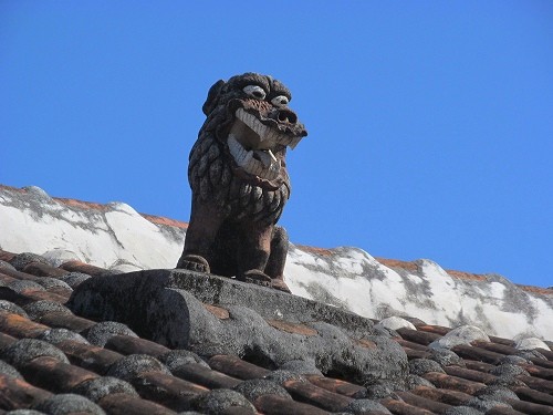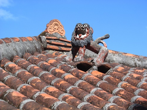 ![]() 屋根のシーサーは、伝統的なやちむん(沖縄の焼き物)や漆喰、石などが用いられています。 |