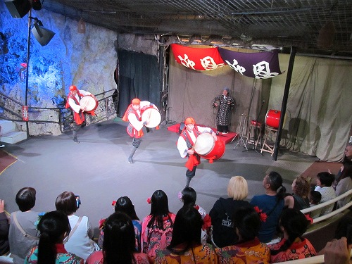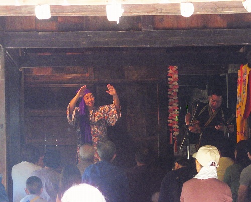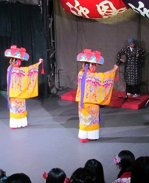 ![]() 『中央広場の島袋家』 沖縄の踊りを実演していました |