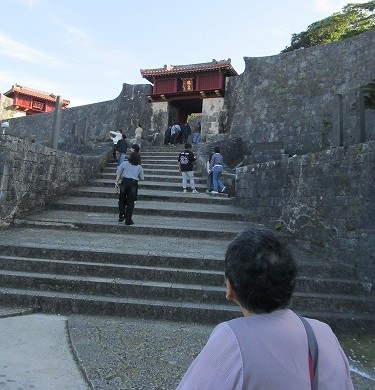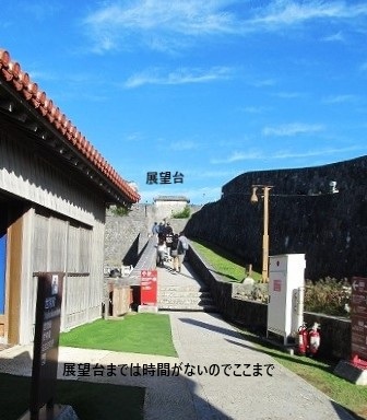 10:30ホテル==万座毛30分==ランチあぐー豚60分==座喜味城址30分==琉球村60分==首里城公園・・・守礼門・・・園比屋武御巌石門:計50分==17:00~ヒルトン那覇