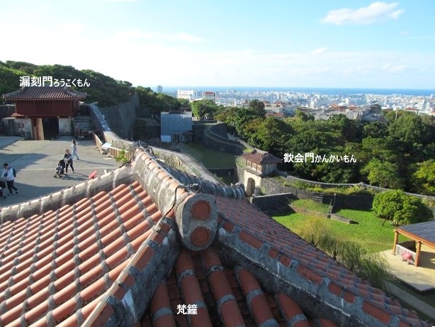 ![]() まばゆい正殿の正面 ![]() 有料区域から那覇市内を見下ろす |