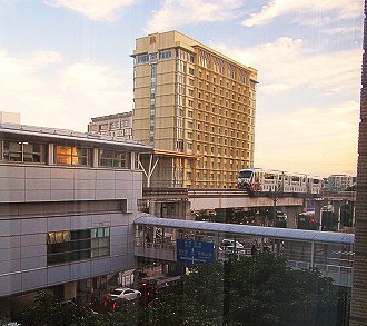 ![]() ホテルの窓からモノレール旭橋駅 6:30からの朝食すでに満席で30分待ち、テイクアウトで部屋で食べました。 |