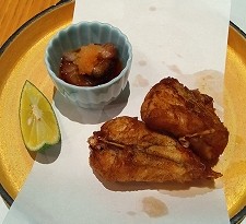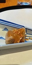 ![]() 二人分しかないので半分づつ(砂糖がまぶされたサツマイモサービスで出してくれました) |