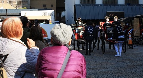 ![]() 芸子さんがタクシーから降りて、人力車に乗り込みました。 |
