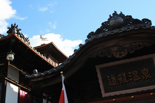 ![]() 道後温泉の屋根のサギの向いた方角(西)が昔の正面入り口でしたが、現在は南。 |