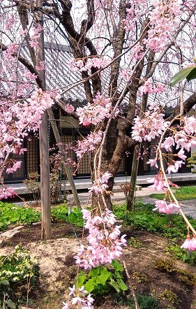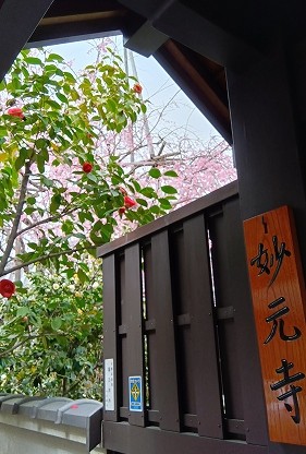 卓球仲間を送り見つけた 久法山 妙元寺の枝垂れ桜が満開でした