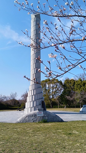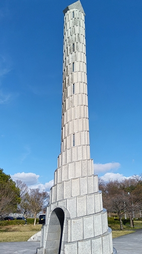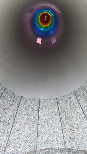 平和公園の『虹の塔』 21世紀をイメージした高さ21mのモニュメント、中に入り見上げると七色のガラスに差し込む光が美しい