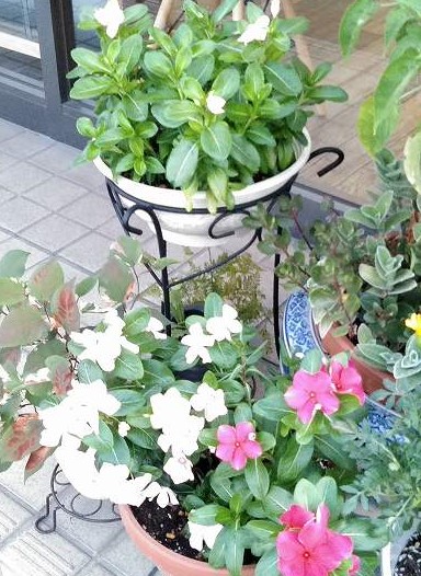 種から育てたニチニチ草はご立派! 「青空」の後ろに「風のささやき」と続けたくなります。