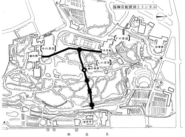 ![]() 揚輝荘の敷地内に地下トンネルが残されている |