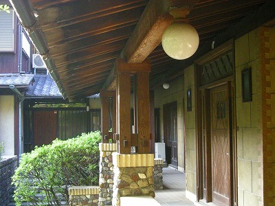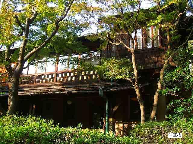 ![]() 和風の造りと洋室とが違和感なく統合されている。「伴華楼」はバンガローのもじりである。 |